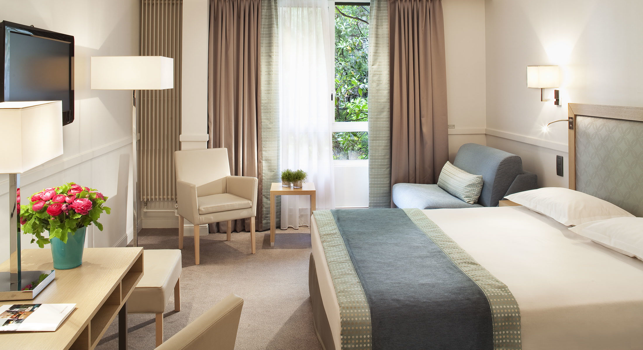 La chambre triple Executive, dotée d’une grande salle de bains, offre plus d’espace pour un séjour à partager dans un cadre sobre et élégant. Elle convient parfaitement pour un long séjour à Paris.